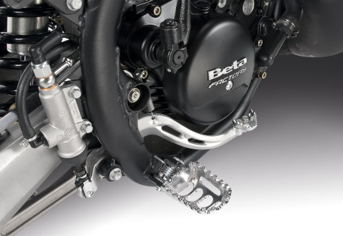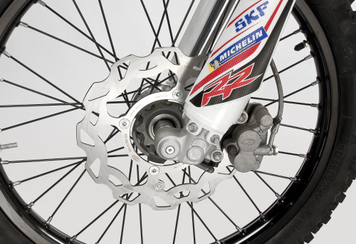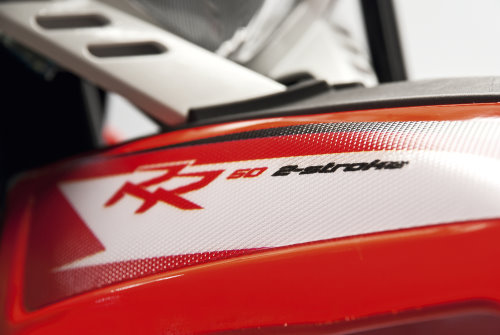 Fahrwerk Äußerst widerstandsfähiger Rahmen in neuem Design aus Stahl mit ellipsenförmigen Aufzügen, quadratischen Rohren und Knotenblechen am Steuerrohr. Dank des Tragrahmens hat die neue RR 50-Generation ihre bereits exzellente Wendigkeit und Stabilität beim OffRoad-Fahren verbessert